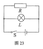 25. 如图23所示的电路中,定值电阻R=20Ω,闭合开关,通过电阻R的电流为0.1A,通过灯L的电流为0.2A。