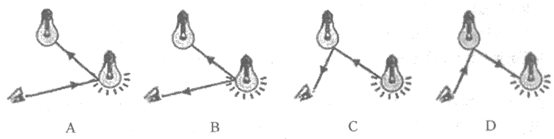 3. 黑暗的房间里有两盏电灯,只有一盏灯点亮,但人能看到未点亮的灯泡。图2中对于”看到未点亮灯泡”所画的光路图,正确的是( )