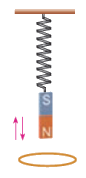 12. 物理课上,老师做了一个”电磁阻尼”实验:弹簧上端固定,下端悬挂一个磁铁,将磁铁托起到某一高度后放开,磁铁上下振动很长时间才能停下来;如图所示,如果在磁铁上下振动时,其正下方放置一个固定的铝质闭合圆环时,磁铁就会很快地停下来。某同学模仿老师另找器材再进行此实验。他安装好器材,经反复实验后发现:磁铁下方放置的圆环并没有对磁铁的振动产生影响。其失败原因可能是他选用的