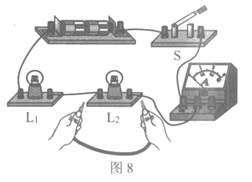 13.图8所示的电路中,小灯泡L1、L2的额定电压均为2.5V,闭合开关S,小灯泡L1、L2均发光。若把导线接在小灯泡L2的两端,则不可能出现的情况是